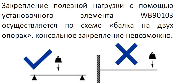 Закрепление полезной нагрузки с помощью установочного элемента WB90103 осуществляется по схеме «балка на двух опорах», консольное закрепление невозможно.