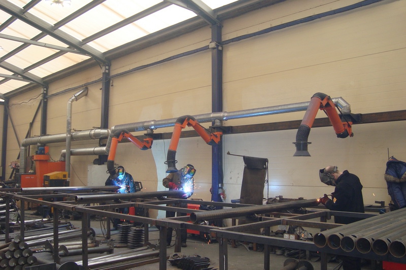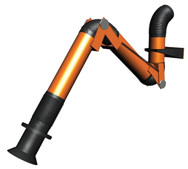 Конструкция устройства позволяет максимально приблизить воронку к источнику выделения вредных веществ и добиться высокой эффективности их улавливания.