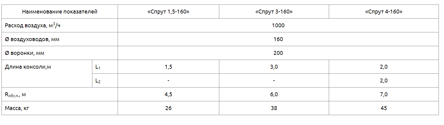 Устройства с консолью 1,5м называется Спрут 1,5-160, с консолью 3м называется Спрут 3-160, а с двойной двухметровой консолью Спрут 4-160.